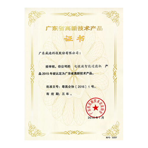 2015年廣東省高新技術產(chǎn)品-電鍍液智能過濾機