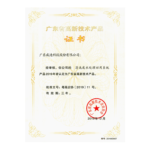 2019年12月高新技術產(chǎn)品-清洗廢水處理回用系統(tǒng)