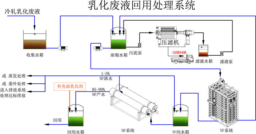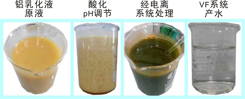 4. 產(chǎn)水添加合適比例的乳化劑后直接回用于生產(chǎn),降低生產(chǎn)成本。鐵乳化液——采用VD回用處理工藝水質(zhì)變化示意圖