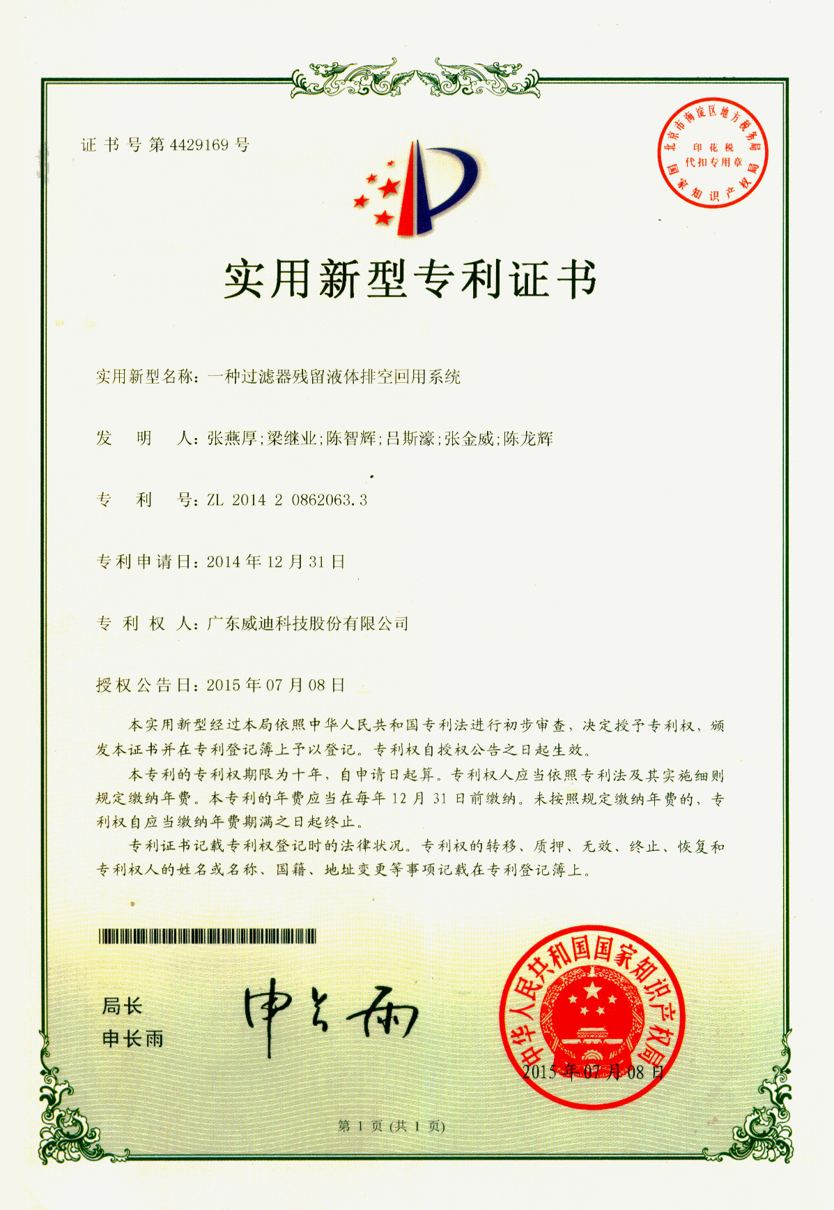 一種過(guò)濾器殘留液體排空回用系統(tǒng)