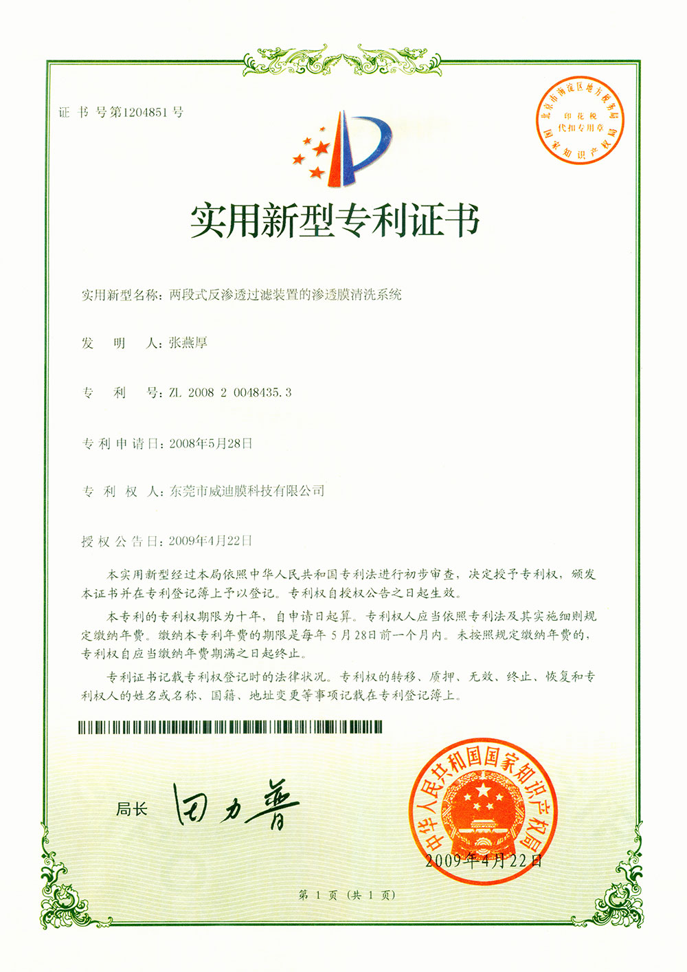 兩段式反滲透過(guò)濾裝置的滲透膜清洗系統(tǒng)
