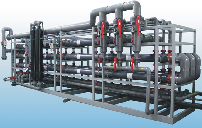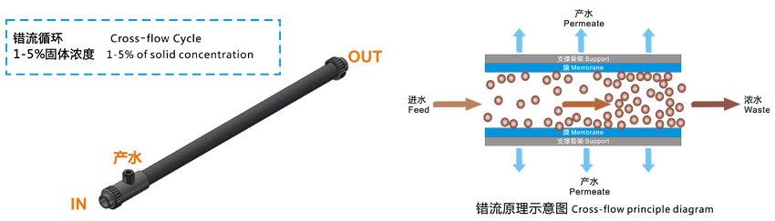 TMF管式微濾膜是新一代的管式膜系統(tǒng),用以替代現(xiàn)有膜產(chǎn)品。該膜系統(tǒng)在運(yùn)行時(shí),經(jīng)過(guò)化學(xué)加藥預(yù)處理后的廢水高速流過(guò)管式膜,以保持湍流。在操作壓力為20-80psi的條件下,干凈的液體通過(guò)膜孔過(guò)濾出來(lái),同時(shí)懸浮固體顆粒留在回流的液體中,回流液體保持湍流以防止顆粒物在膜的內(nèi)層表面堆積,因此可以使該膜系統(tǒng)獲得非常高的膜過(guò)濾通量,同時(shí)延長(zhǎng)膜的使用壽命。這種湍流錯(cuò)流過(guò)濾以及大通道膜管去掉了對(duì)預(yù)處理的需求,可以處理重量比高達(dá)5%的高固體含量的液體。