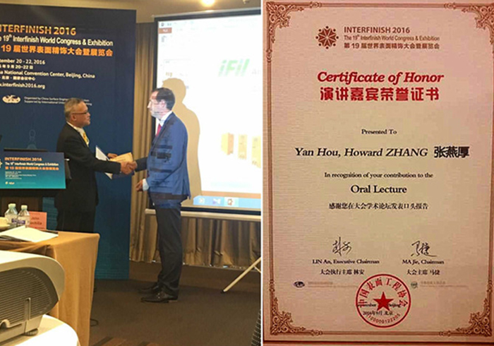 2016年9月20日至22日,廣東威迪科技股份有限公司(以下簡(jiǎn)稱(chēng):威迪)董事長(zhǎng)張燕厚與董事梁耀林一同出席了于北京?國(guó)家會(huì)議中心召開(kāi)的第19屆世界表面精飾大會(huì)暨展覽會(huì)(Interfinish2016)。