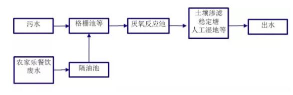 目前應(yīng)用最為廣泛的工藝有:厭氧+人工濕地、AO+人工濕地、AO工藝、復(fù)合慮床、膜一體化設(shè)備等。下面介紹農(nóng)村生活污水常見的四種工藝模式:厭氧生物處理+生態(tài)工程、厭氧生物處理+好氧生物處理+生態(tài)工程、沼氣池+厭氧生物處理+好氧生物處理+人工濕地+農(nóng)業(yè)灌溉、一體化成套設(shè)備。