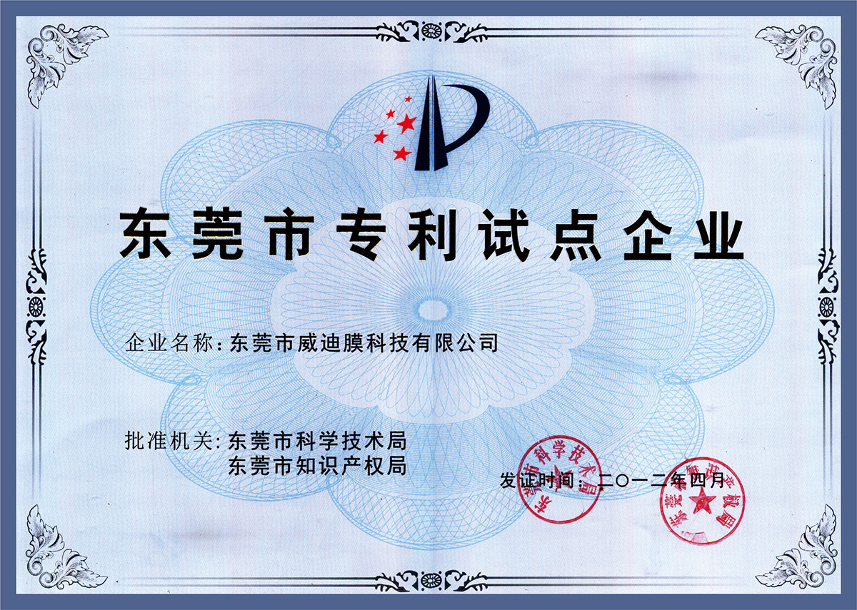 東莞市專利試點(diǎn)證書