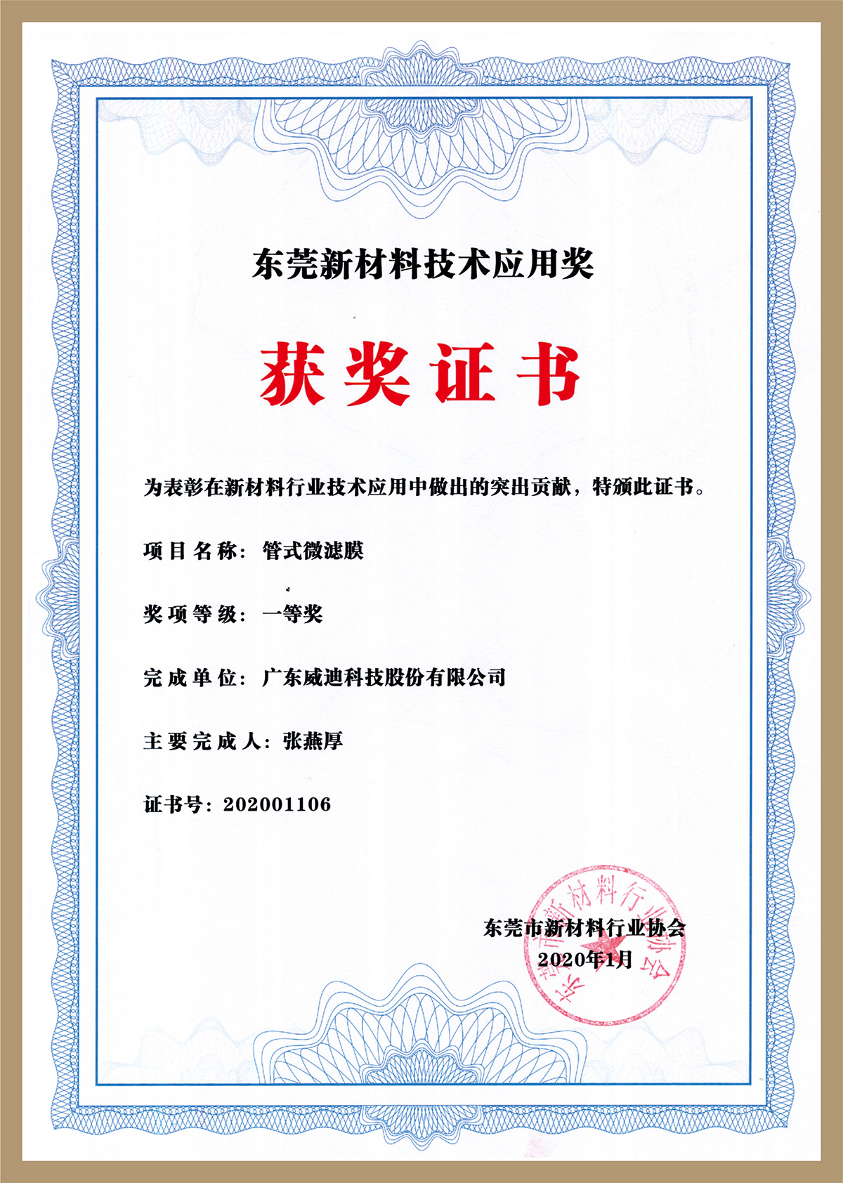 東莞新材料技術(shù)應(yīng)用獎(jiǎng)一等獎(jiǎng)