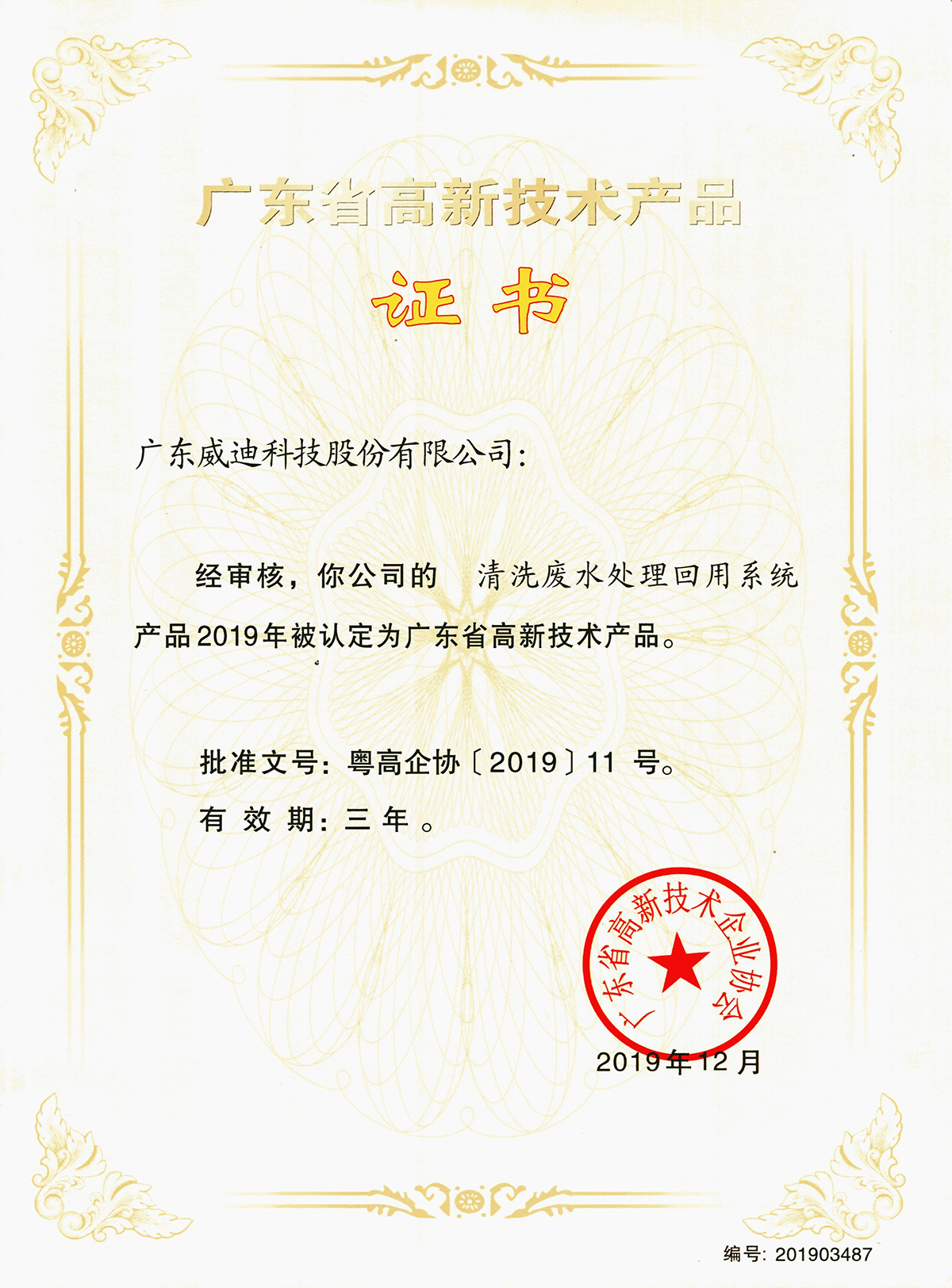 2019年12月高新技術(shù)產(chǎn)品-清洗廢水處理回用系統(tǒng)