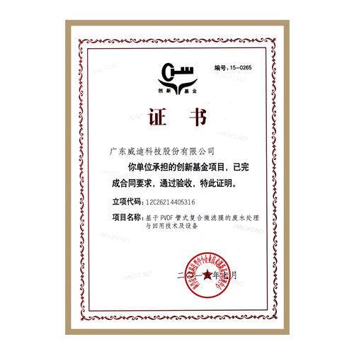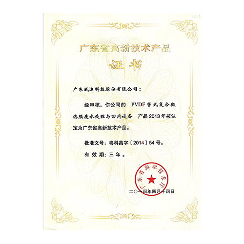 2013年廣東省高新技術(shù)產(chǎn)品-PVDF管式復(fù)合微濾膜廢水處理與回用系統(tǒng)