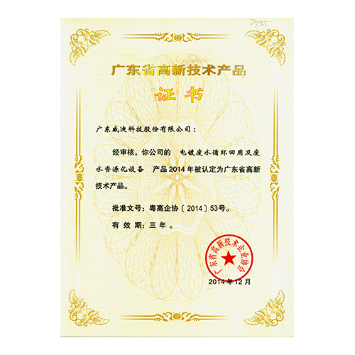2014年廣東高新技術(shù)產(chǎn)品-電鍍廢水循環(huán)回用及廢水資源化設(shè)備